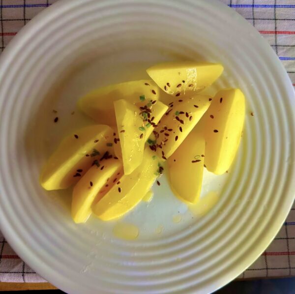 Las guarniciones de papas al vapor son una opción deliciosa y saludable para acompañar tus comidas. Estas papas, cocidas al vapor, conservan su textura suave y su sabor natural. Pero lo que realmente las hace destacar es la presentación y el toque de sabor adicional que se logra con el mix de semillas, el perejil fresco y el aceite de oliva.