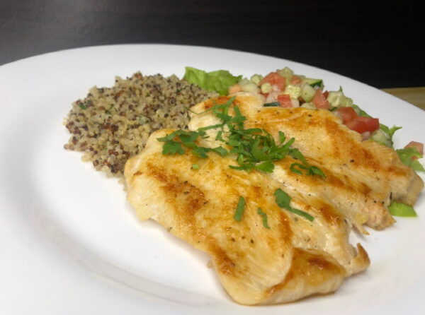 Deliciosa suprema de pollo condimentada con dos acompañantes al gusto.